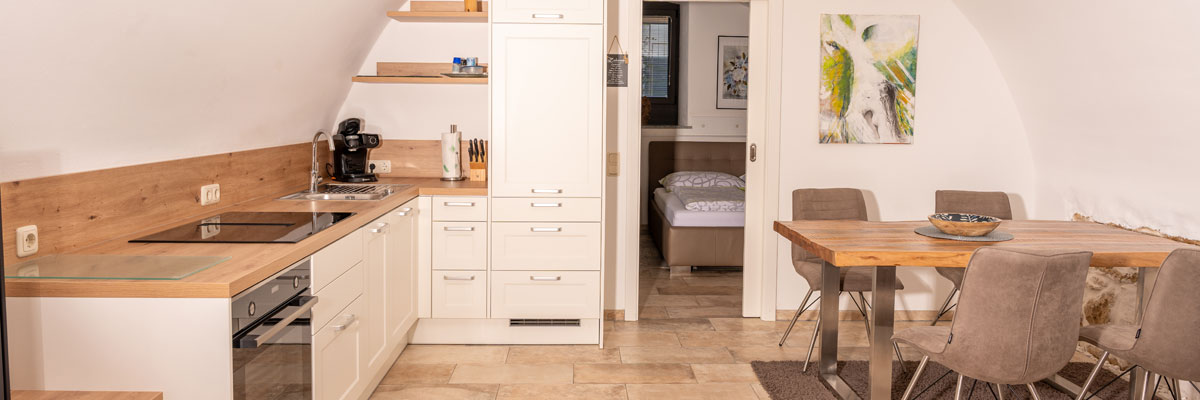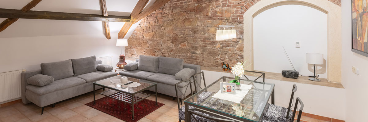 Unsere 4 Ferienwohnungen bieten jeden Komfort inmitten der 300-jährigen Gemäuer, die die Geschichte unserer Stadt atmen. Die Apartments sind teilweise klimatisiert. Im zentral gelegenen Bürgerhaus stehen unseren Gästen auch ein uriger Weinkeller und ein kühler Innenhof offen. Im versperrten Fahrradraum können Fahrräder sicher verwahrt und E-Bikes geladen werden.